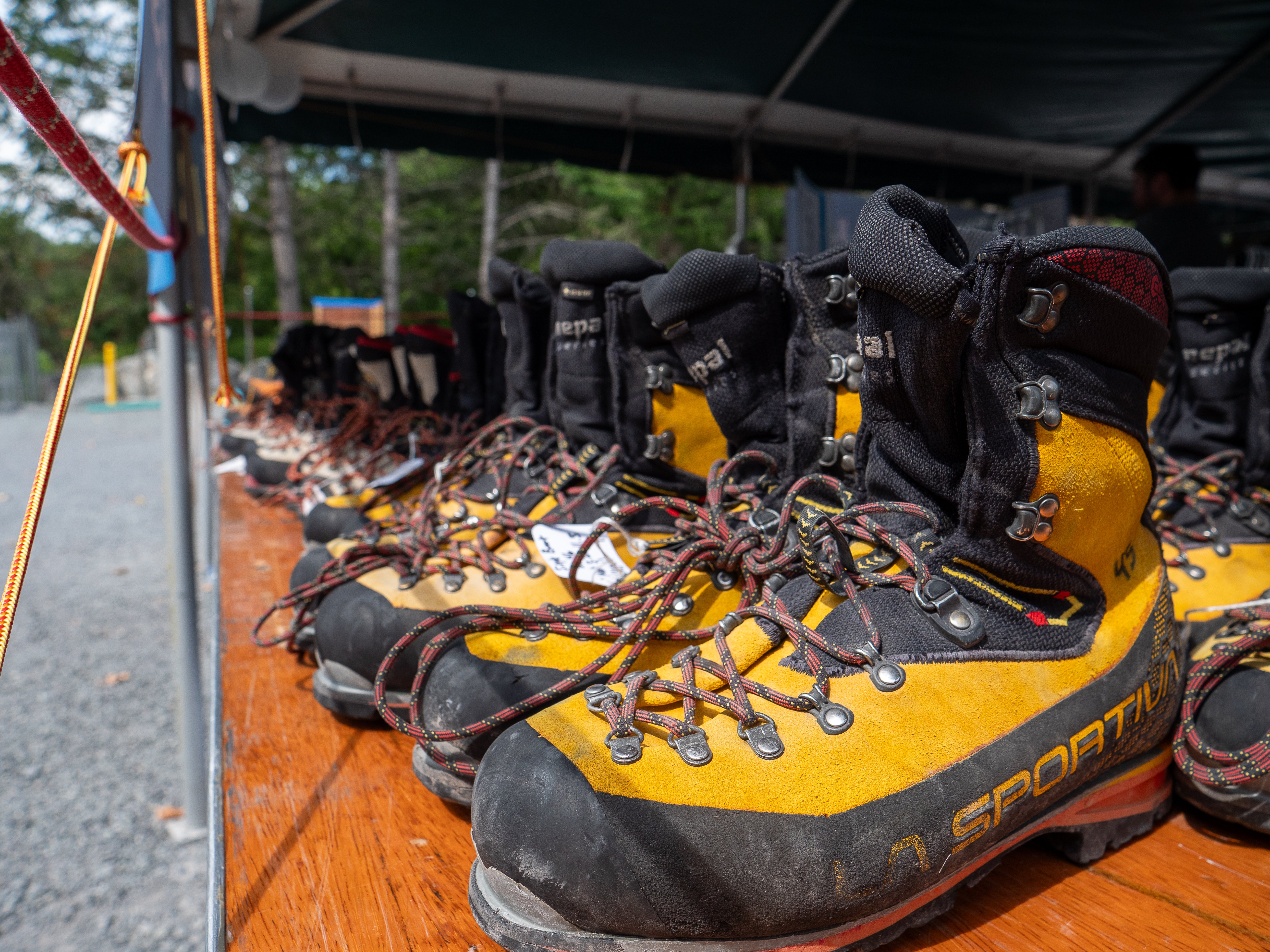Substantial outdoor use, probably about a season, and clear evidence that someone has loved this gear. Worn enough to be undoubtedly "second-hand."