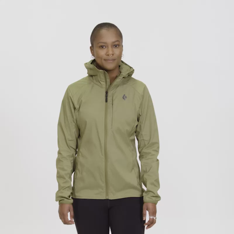 An ultralight softshell designed to shield weight-conscious climbers from ridgeline gusts and light weather, the Black Diamond Alpine Start Hoody features Schoeller stretch-woven fabric to provide highly breathable and highly packable weather resistance. An updated silhouette provides an increased range of motion and unrestricted movement, so that you can keep climbing even in windy and cold conditions. Elastic banding on hood, cuffs, and hem seals in warmth and secures fit, while a drop hem is harness-compatible.
